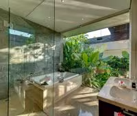 Las tres habitaciones de invitados en la planta baja de la Villa Aiko cuentan con puertas de vidrio de piso a techo, lo que permite disfrutar al máximo de las espectaculares vistas. Amuebladas con camas king-size, estas habitaciones disponen de excepcionales baños en suite con duchas de efecto lluvia y amplias bañeras. Dos de las habitaciones tienen balcones sombreados con vistas a la piscina, mientras que la tercera tiene acceso directo desde el área de comedor y cocina. Todas las habitaciones de la Villa Aiko están equipadas con aire acondicionado y pantallas de televisión de 32 pulgadas.