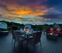 La Villa Aiko encarna la antigua filosofía china del yin y el yang: una combinación armoniosa de luz, espacio y aire, equilibrada con líneas arquitectónicas clásicas elaboradas en teca, mármol, granito y madera de hierro reciclada. Cada espacio de la Villa Aiko, tanto interior como exterior, aprovecha al máximo su espectacular ubicación en la cima de una colina. No importa dónde estés, las vistas te dejarán sin aliento. Despierta con el canto de los pájaros y, desde la comodidad de tu cama king-size, observa cómo la niebla se disipa sobre las montañas. Relájate en tu terraza privada bajo el sol o retírate del calor en la biblioteca con aire acondicionado. Luego, disfruta de una exquisita cena preparada por tu chef privado mientras observas cómo las luces titilan en la bahía de Jimbaran.